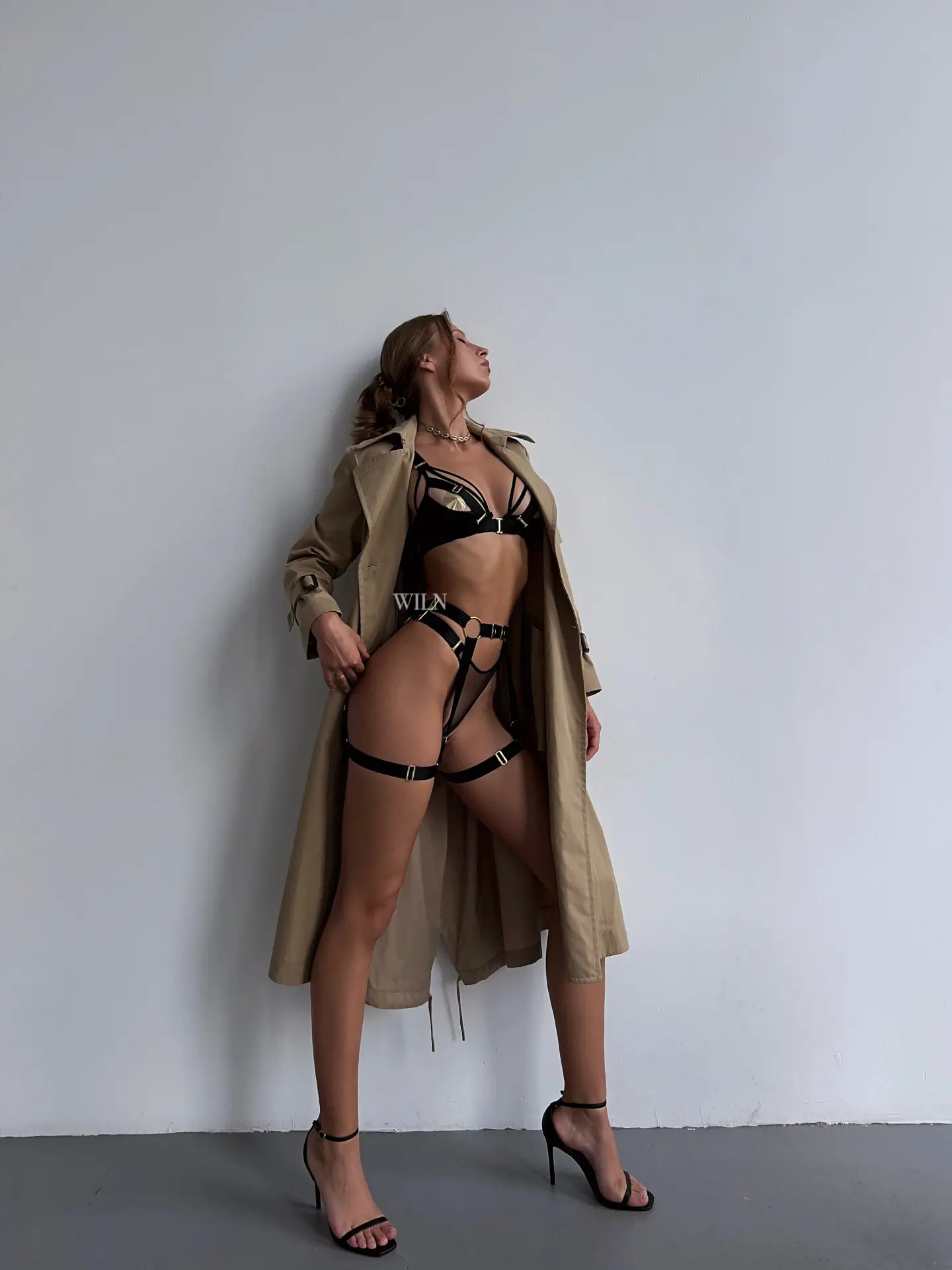 Feel amazing in one of our most flattering sets yet! A perfect figure-hugging and elegant 4 piece black lingerie set.